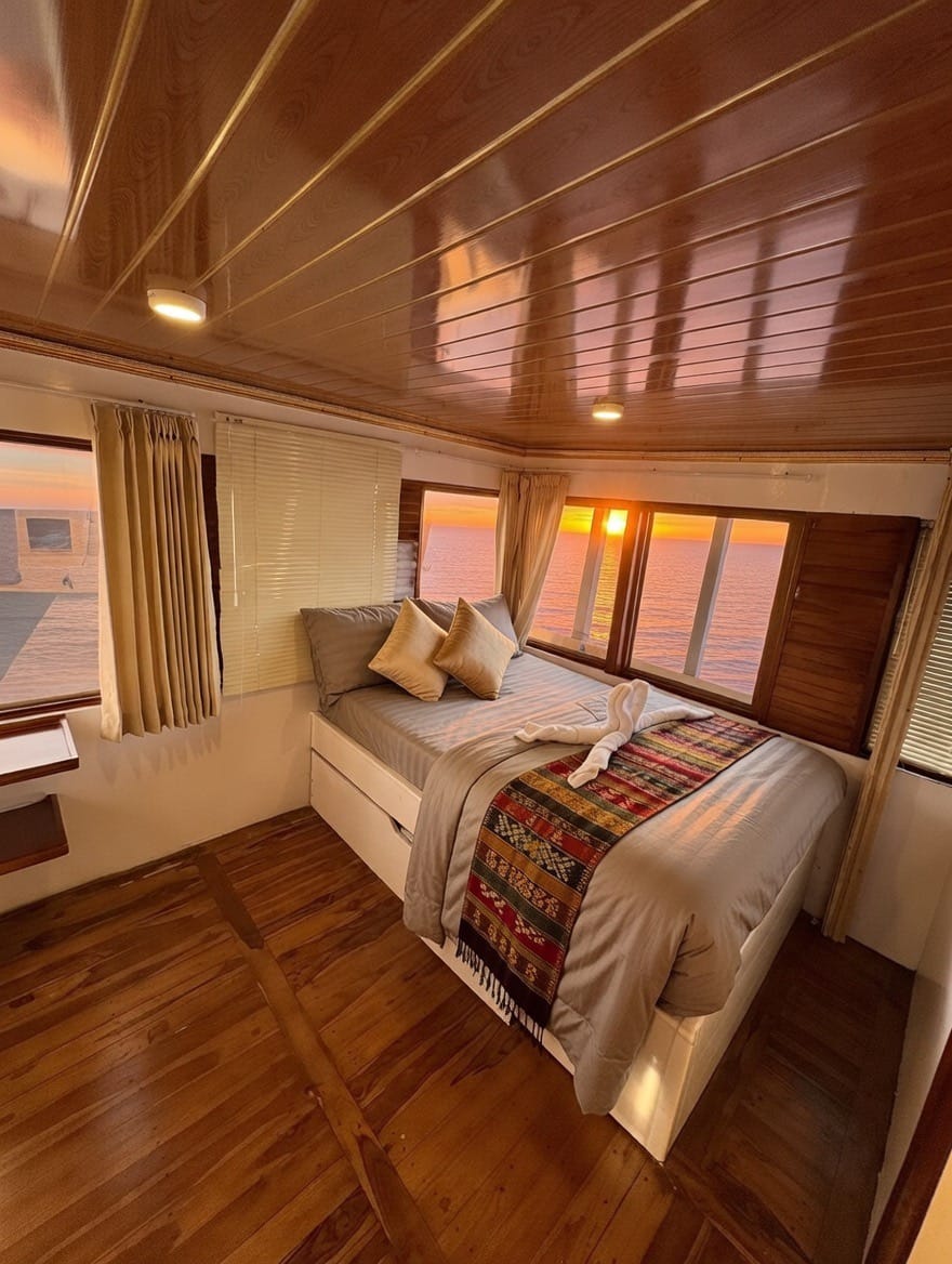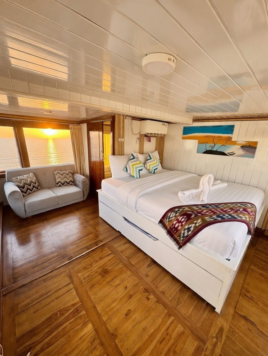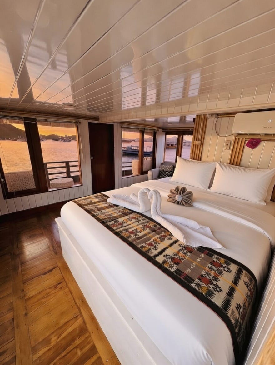Dilengkapi dengan cabin ber-AC, kamar mandi dalam, serta area deck yang luas untuk menikmati pemandangan Komodo, kapal ini cocok untuk kamu yang ingin upgrade dari trip biasa menjadi pengalaman yang lebih nyaman dan estetik.